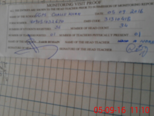 | EMIS Code: 31310418 | Name of School: GGPS CHALLU KHAN | |||