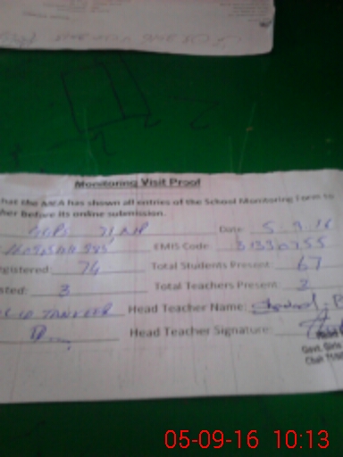 | Attendance Register | Head Teacher | MEA with School | Visit Proof |