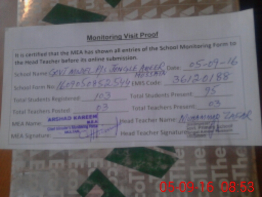 | EMIS Code: 36120188 | Name of School: GMPS JANGAL AMIR HUSSAIN (JALAL ABAD) | |||