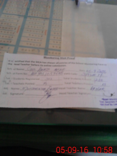 | Attendance Register | Head Teacher | MEA with School | Visit Proof |