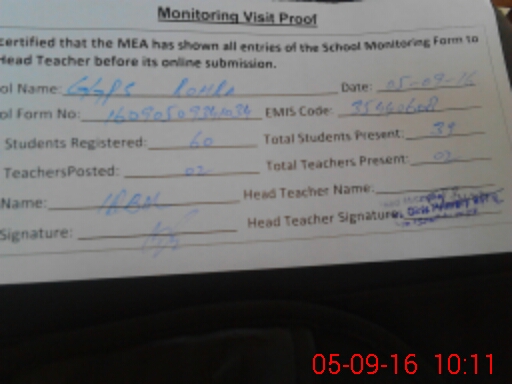 | Attendance Register | Head Teacher | MEA with School | Visit Proof |