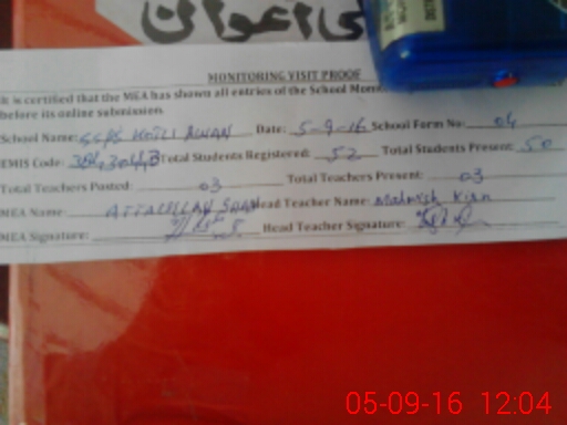 | EMIS Code: 38430443 | Name of School: GGPS KOTLI AWAN | |||