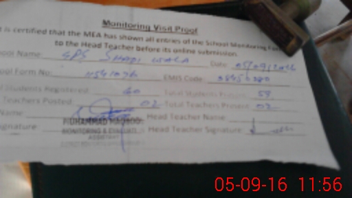 | Certified that this School was Inspected by the Undersigned MEA/DMO Today and the Information Stated Above is as Per Record. | |||||