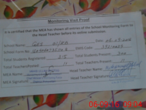| Certified that this School was Inspected by the Undersigned MEA/DMO Today and the Information Stated Above is as Per Record. | |||||