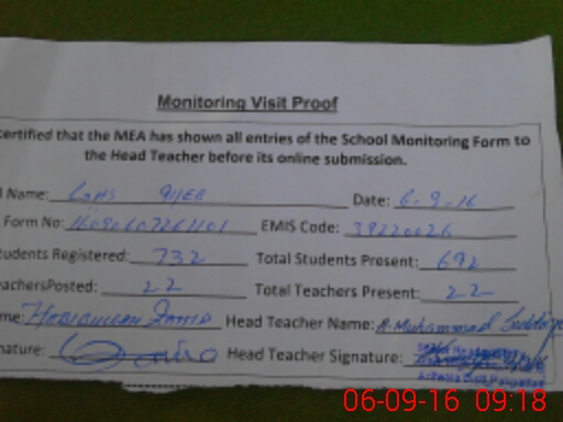| Certified that this School was Inspected by the Undersigned MEA/DMO Today and the Information Stated Above is as Per Record. | |||||