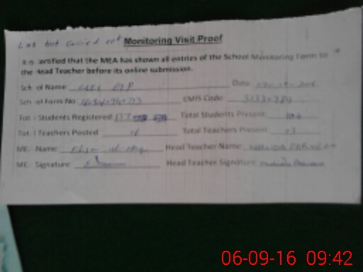 | Certified that this School was Inspected by the Undersigned MEA/DMO Today and the Information Stated Above is as Per Record. | |||||