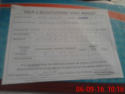 | Attendance Register | Head Teacher | MEA with School | Visit Proof |