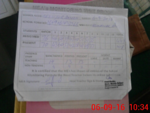 | Attendance Register | Head Teacher | MEA with School | Visit Proof |