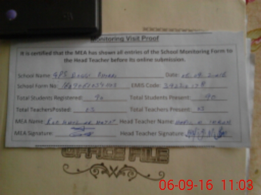 | Certified that this School was Inspected by the Undersigned MEA/DMO Today and the Information Stated Above is as Per Record. | |||||