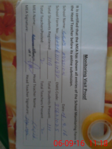 | Certified that this School was Inspected by the Undersigned MEA/DMO Today and the Information Stated Above is as Per Record. | |||||