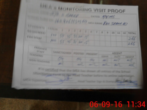 | Attendance Register | Head Teacher | MEA with School | Visit Proof |
