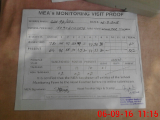 | Attendance Register | Head Teacher | MEA with School | Visit Proof |