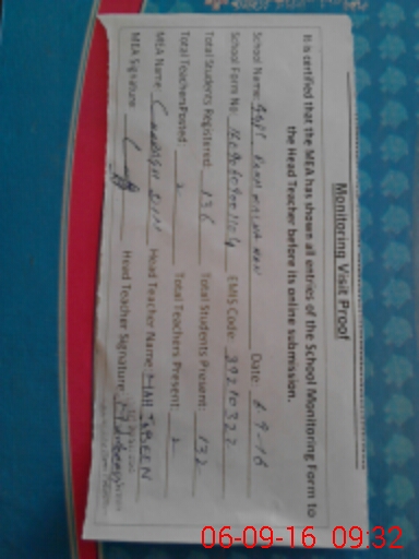 | Attendance Register | Head Teacher | MEA with School | Visit Proof |