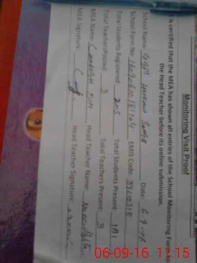 | Attendance Register | Head Teacher | MEA with School | Visit Proof |