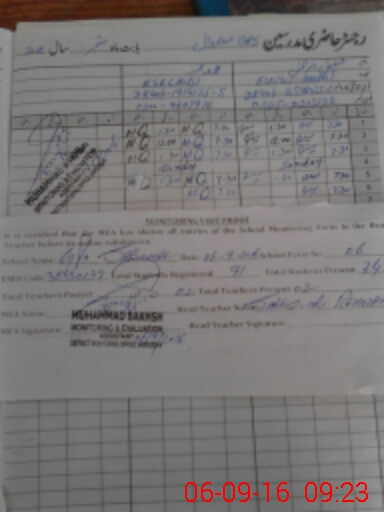 | Certified that this School was Inspected by the Undersigned MEA/DMO Today and the Information Stated Above is as Per Record. | |||||