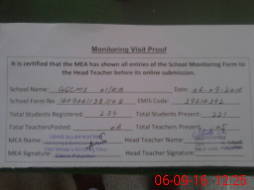 | EMIS Code: 39210342 | Name of School: GGCMES 1 KB PAKPATTAN | |||