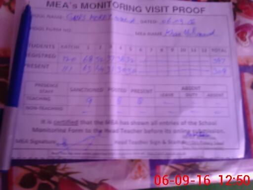 | Attendance Register | Head Teacher | MEA with School | Visit Proof |