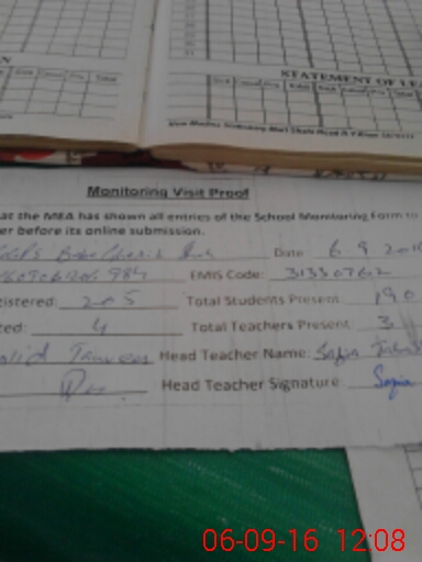| Attendance Register | Head Teacher | MEA with School | Visit Proof |