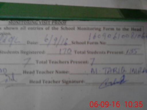 | Name: IF**** HU**** Designation: (School Headmaster's/Headmistress's) PTC/JV Phone/Cell Number: 03**** |