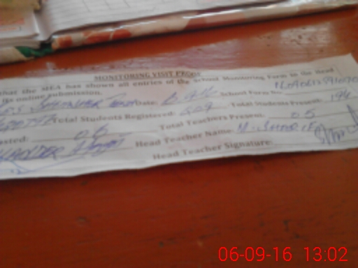 | Attendance Register | Head Teacher | MEA with School | Visit Proof |