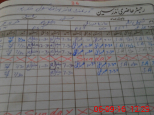 | CNIC | Full Name | Designation | R/C | Absence During Last Calender Month |