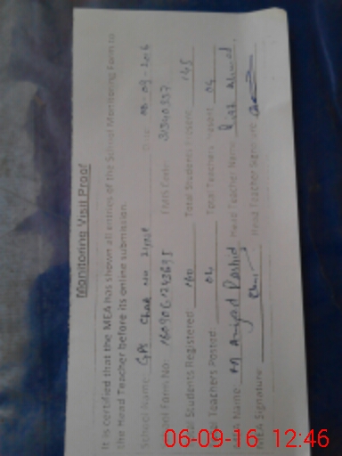 | Certified that this School was Inspected by the Undersigned MEA/DMO Today and the Information Stated Above is as Per Record. | |||||