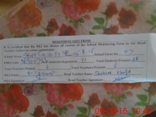 | Certified that this School was Inspected by the Undersigned MEA/DMO Today and the Information Stated Above is as Per Record. | |||||