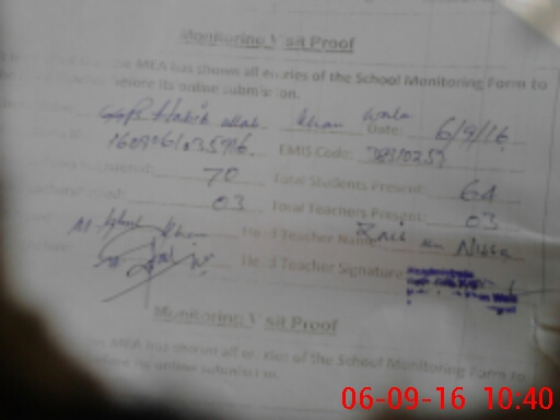 | Name: Za**** Bi**** Designation: (School Headmaster's/Headmistress's) PST Phone/Cell Number: 03**** |