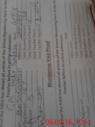 | Attendance Register | Head Teacher | MEA with School | Visit Proof |