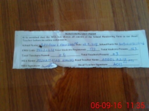 | Attendance Register | Head Teacher | MEA with School | Visit Proof |