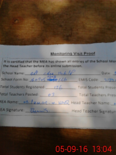 | Certified that this School was Inspected by the Undersigned MEA/DMO Today and the Information Stated Above is as Per Record. | |||||