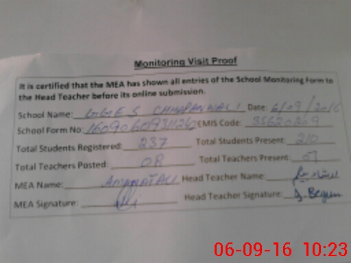 | Certified that this School was Inspected by the Undersigned MEA/DMO Today and the Information Stated Above is as Per Record. | |||||