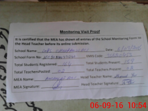 | EMIS Code: 35620453 | Name of School: GPS CHHAPAN WALI | |||