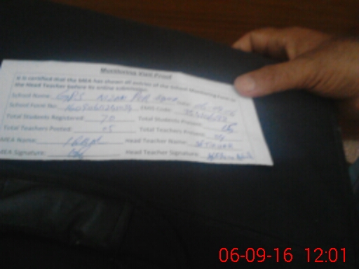 | Attendance Register | Head Teacher | MEA with School | Visit Proof |