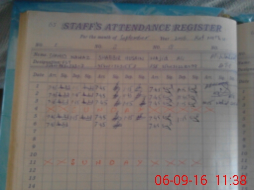 | CNIC | Full Name | Designation | R/C | Absence During Last Calender Month |