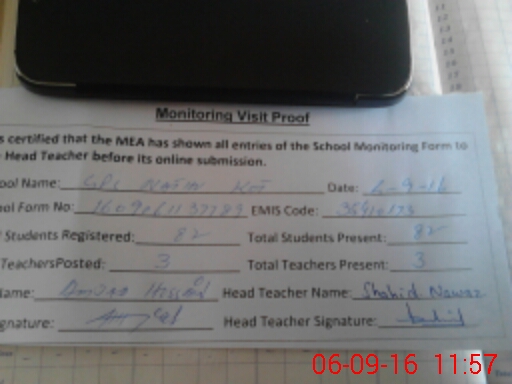 | Certified that this School was Inspected by the Undersigned MEA/DMO Today and the Information Stated Above is as Per Record. | |||||