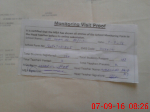 | Attendance Register | Head Teacher | MEA with School | Visit Proof |