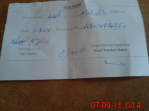 | Attendance Register | Head Teacher | MEA with School | Visit Proof |