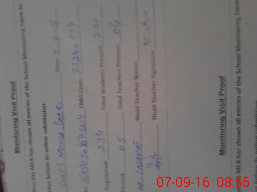 | Attendance Register | Head Teacher | MEA with School | Visit Proof |
