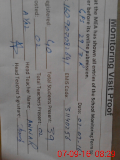 | Certified that this School was Inspected by the Undersigned MEA/DMO Today and the Information Stated Above is as Per Record. | |||||