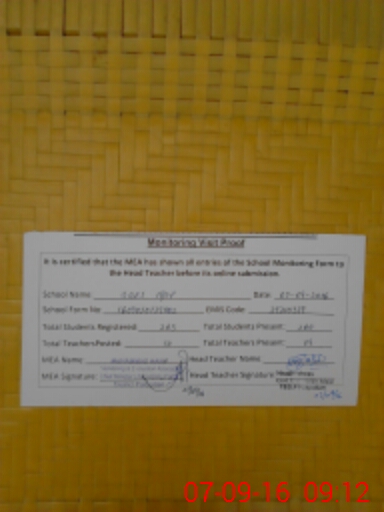 | Attendance Register | Head Teacher | MEA with School | Visit Proof |