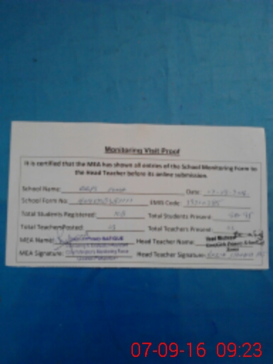 | Attendance Register | Head Teacher | MEA with School | Visit Proof |