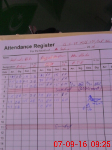 | CNIC | Full Name | Designation | R/C | Absence During Last Calender Month |