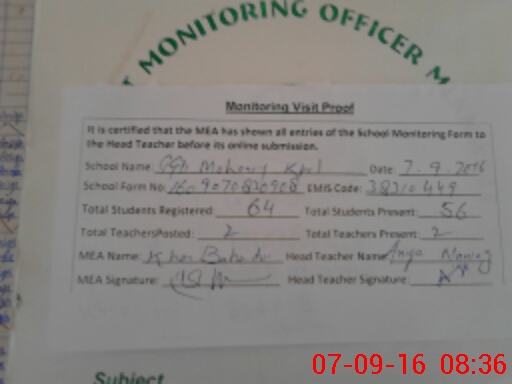 | Attendance Register | Head Teacher | MEA with School | Visit Proof |