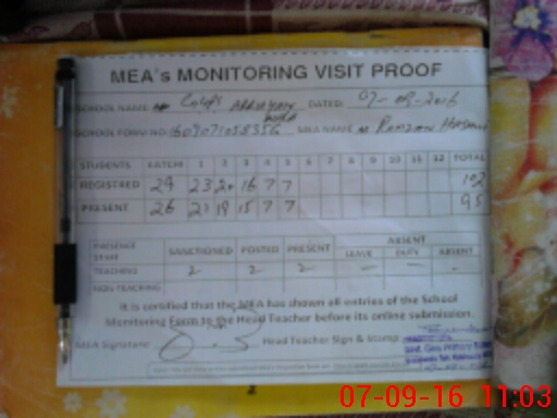 | Attendance Register | Head Teacher | MEA with School | Visit Proof |