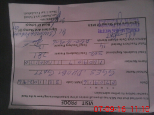 | Attendance Register | Head Teacher | MEA with School | Visit Proof |