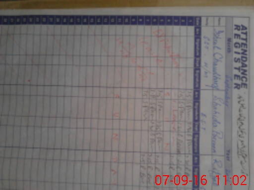 | CNIC | Full Name | Designation | R/C | Absence During Last Calender Month |