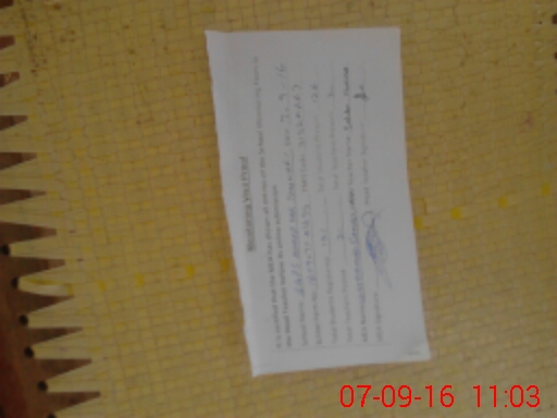 | Monitoring Date: 07-09-2016 | Start Time: 07-09-2016 10:39 AM | End Time: 07-09-2016 11:06 AM | Name of MEA: Mu**** Sa**** Ul**** Sa**** | |