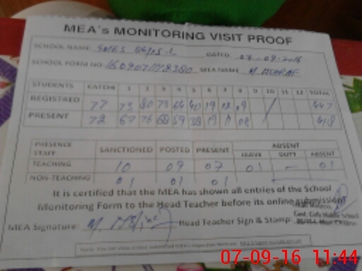 | Attendance Register | Head Teacher | MEA with School | Visit Proof |