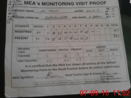 | Attendance Register | Head Teacher | MEA with School | Visit Proof |